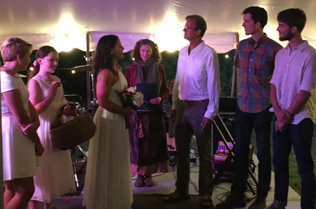 “You have knowledge of the spiritual and a knack for smooth gentle guidance. You take gentle inventory of personalities, soothe people with your insights and optimism, and put my mind at ease. Your confident tone and manner set the stage for a ceremony of reverence in the middle of a loud and crowded place. I couldn’t have imagined anything more lovely for my wedding ceremony.”
